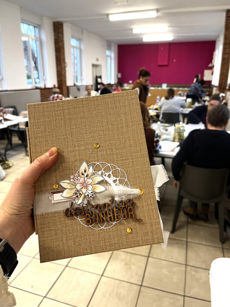 J’ai eu l’immense bonheur d’être invitée par l’association de scrap de mon village natal pour animer une CROP autour de mon tout nouveau projet Destination Bonheur. Revenir là où tout a commencé, avec mes valises remplies de papiers, de tampons et d’émotions… c’était déjà un petit frisson en soi.